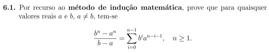 Será que me podiam ajudar a resolver este exercício que envio em anexo. Os exemplos que tenho visto parecem-me sempre mais simples que este, até porque este usa a e b e por outro lado a igualdade do lado direito parece-me que posso dizer que é o binómio de newton, mas tenho muitas dúvidas.