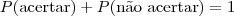 A soma de todas as probabilidades é 1 (afinal de contas, se você somar tudo o que pode acontecer, o resultado é que acontecerá alguma coisa [reflexão profunda, não?]).