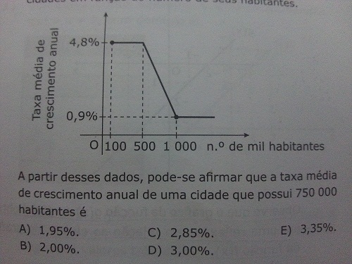 Considere o gráfico seguinte, que apresenta a taxa média de crescimento anual de certas cidades em função do número de habitantes.