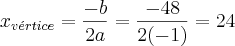 Para o seu problema identificamos, a=-1, b = 48 e c =10.