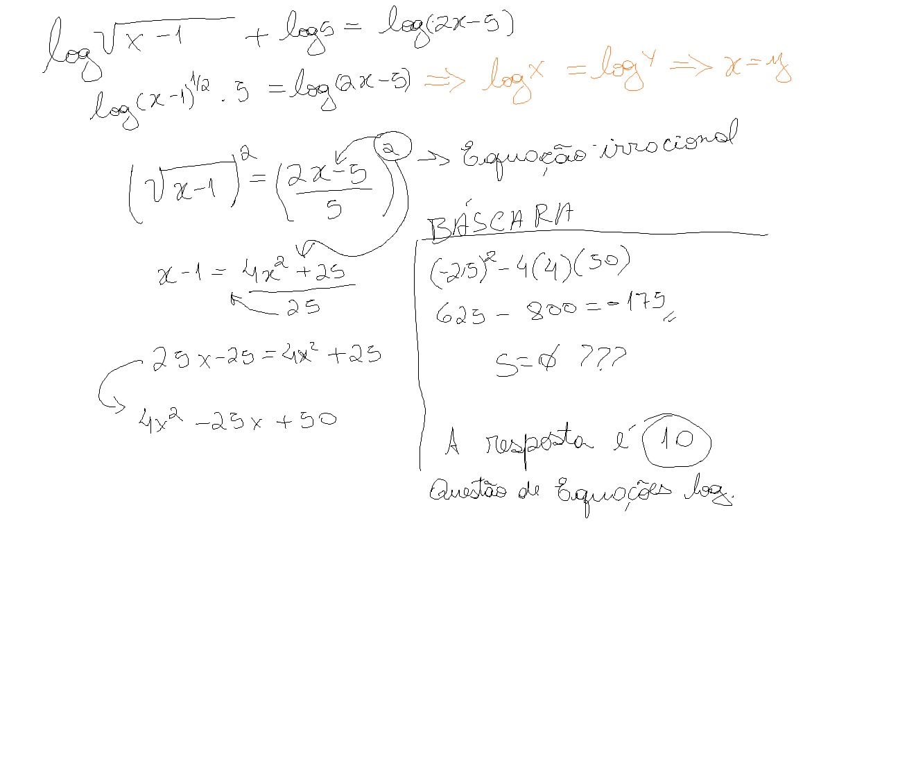 vc sabe somar fraçoes,entao ...(a/2)+b=c...(a+2.b)/2=c...a+2.b=2c,foi isso q. usei na passagem q. vc grifou,estude soma de fraçoes e etc,volte la e refaça(exercicio)...agora,por ultimo na soluçao ...a resposta e 10(esqueci de ver o dominio da expressao)...entao vamos la...y=log x,e definida para