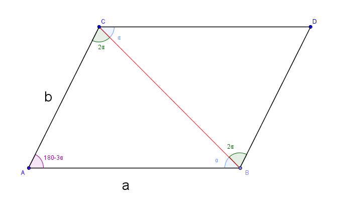 A diagonal menor de um paralelogramo divide um dos ângulos internos em dois outros