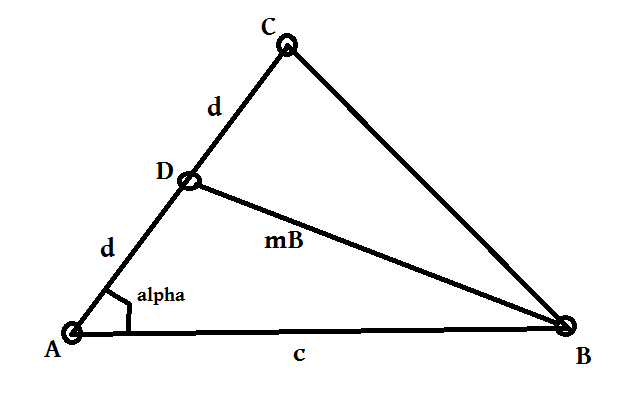 Construa um triângulo dado lado AB de comprimento c, ângulo ? a partir do vértice A e mediana mB.