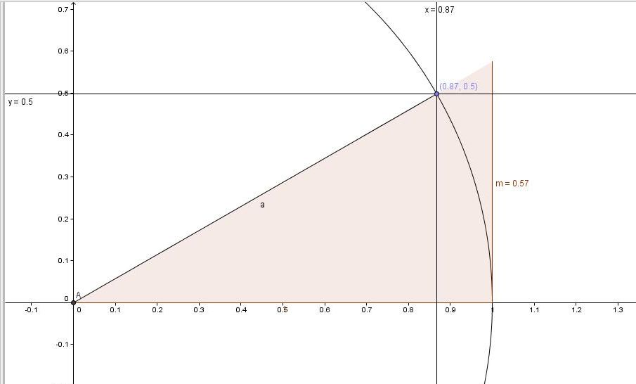 Por exemplo, neste arquio anexo ao post, há um círculo com raio 1. Os valores de sen é 0.5 e cos é 0.87. Como, a partir destes dois dados, eu poderia determinar o ângulo?