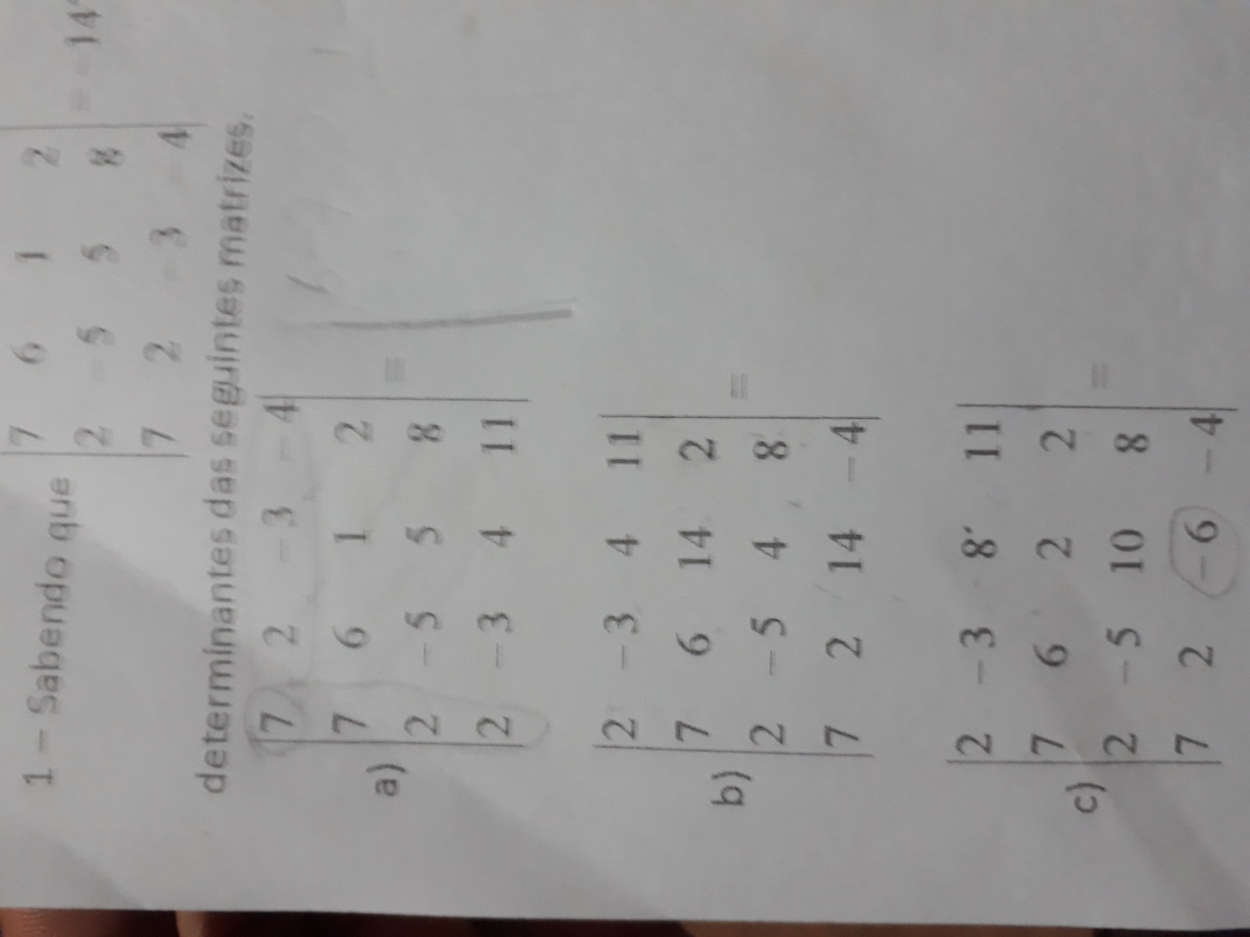Agora podemos calcular o determiannte:
