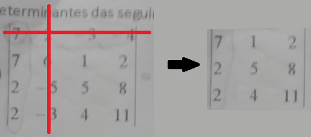 onde "i" representa a linha desse elemento e "j" sua coluna, podemos calcular o det como segue: