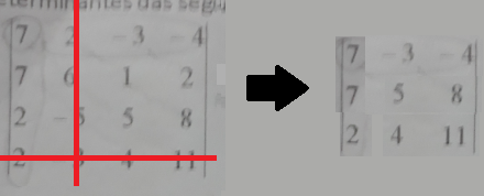 é o determinante da matriz inicial após eliminarmos tanto a coluna quanto a linha das quais o elemento