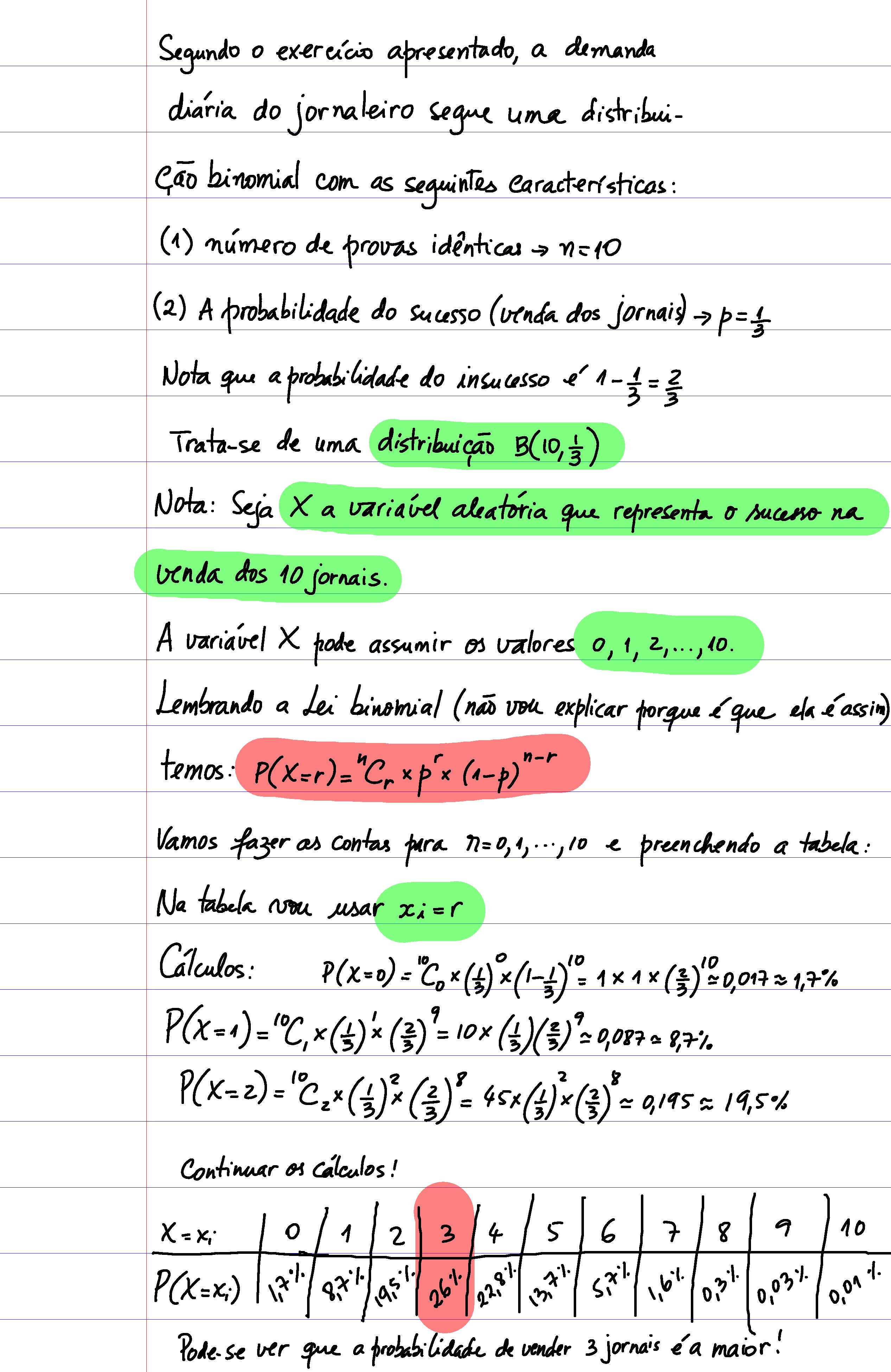 "Um jornaleiro compra jronais por 10 centavos e vende-os por 15 centavos. Entretanto, ele não pode retornar os jornais que não tiver vendido. Se sua demanda diária for uma variavel aleatoria binomial com n=10, p= 1/3, aproximademente quantos jornais ele deve comprar de forma a maximizar o lucro esperado?"