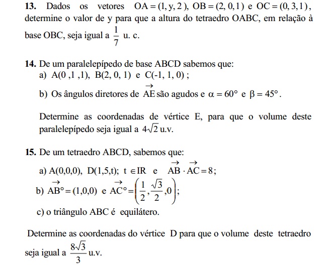Vide apostila questão 13, 14 e 15 quem puder resolver pelo menos 1 eu agradeço.