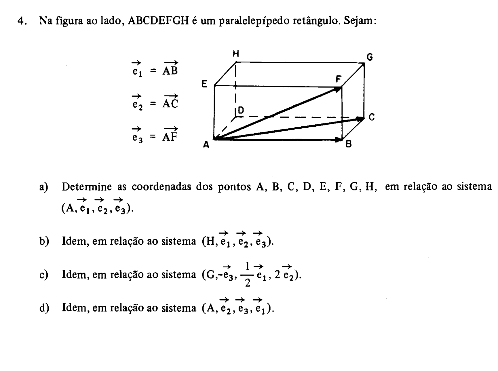 Queria saber como faz para achar os valores da coordenadas... Eu atribui valores para A=(0,0,0) e sei que como é uma base ortonormal, posso colocar os vetores e1=(1,0,0) e2=(0,1,0) e e3=(0,0,1)... mas depois não achei os valores dos outros :/... ajuda =DD