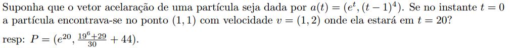 Derive uma vez com relação ao tempo a aceleração. Você obterá uma família de funções candidatas a ser a velocidade da partícula. Use a velocidade dada no instante mencionado para selecionar uma dentre todas. Feita a escolha, derive esta com relação ao tempo e você obterá uma outra família de funções candidatas a ser a posição da partícula. Faça o mesmo que vez para a velocidade para escolher uma. Uma vez feita a escolha, aplique o tempo que deseja obter a posição e a terá.