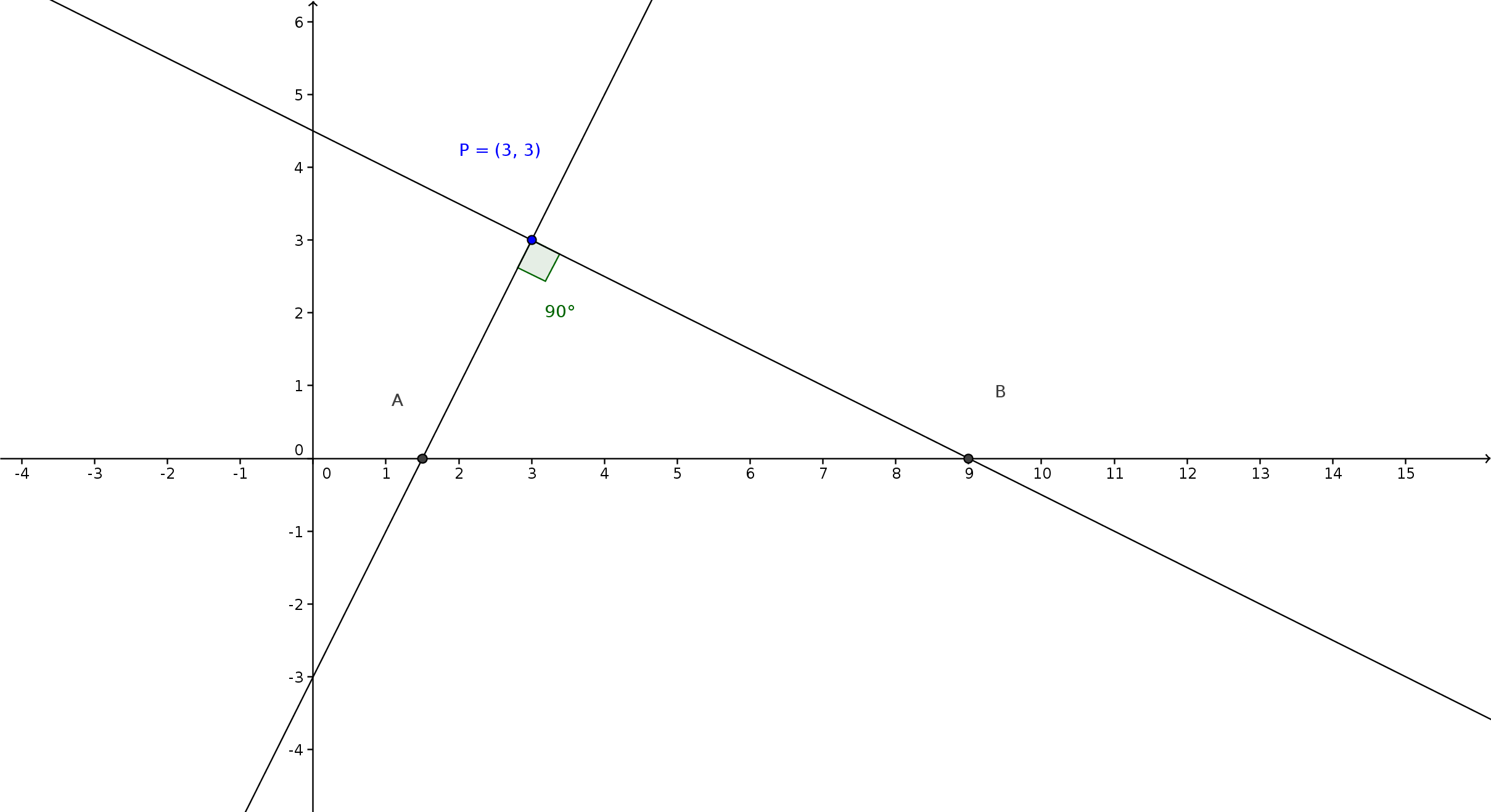 O ponto P (3,3) é o centro de um feixe de retas no plano cartesiano . Determine as equações das retas desses feixe, perpendiculares entre si, que interceptam o eixo Ox nos pontos A e B, e tais que a distância entre eles seja 15/2.