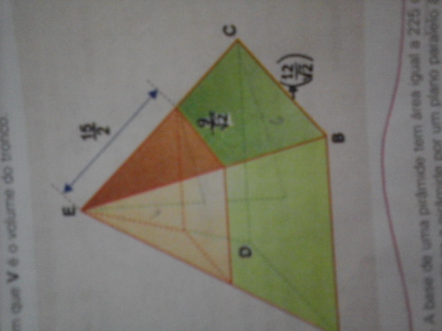 (Unb-DF) Na pirâmide regular de base quadrada, temos as informações dadas na figura. Calcular o valor da expressão k= V-100, em que V é o volume do tronco.