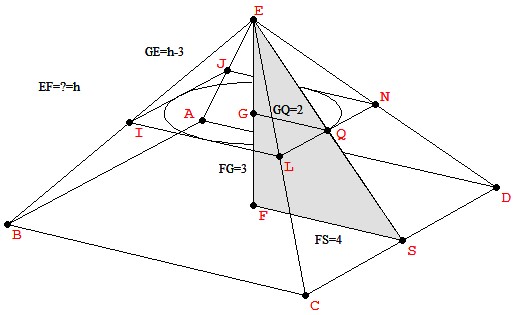 fabiosousa escreveu:Enfim, considere na pirâmide outra seção que contenha o vértice e seja perpendicular a um par de lados da base (conseqüentemente esta seção será paralela ao outro par de lados da base quadrada).