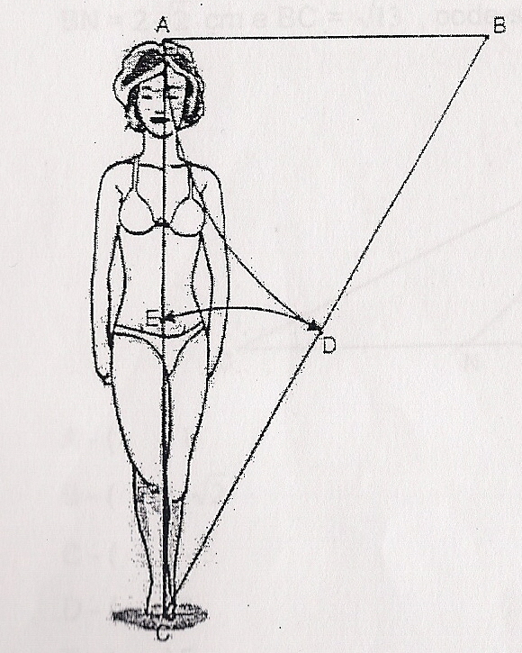 Para surpresa da modelo, CE é a altura do seu umbigo. Tomando AB como unidade de comprimento e considerando