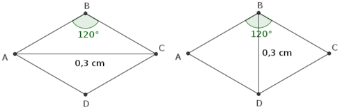 Ericka escreveu:Um mapa é feito em uma escala de 1 cm para cada 200km. O município onde se encontra a capital de certo estado está representado, nesse mapa, por um losango que tem um ângulo de 120° e cuja diagonal mede 0,3cm. Determine a área desse município.