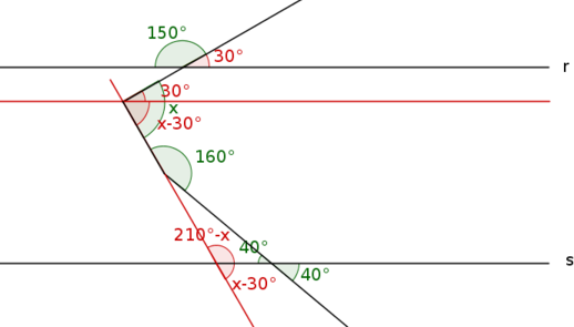 (210°- x) + 40° = 160°