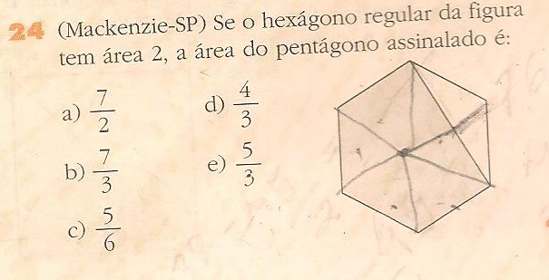 J Hugo escreveu:Se o hexágono regular da figura tem área 2, a área do pentágono assinalado é