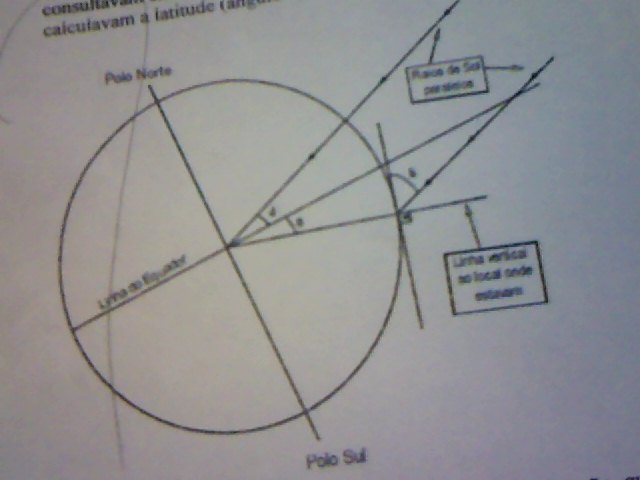 Sol) e calculavam a latitude (ângulo ?), conforme a ilustração a
