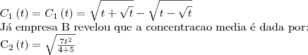 Duas empresas foram contratadas para realizar um estudo ambientalem um certo municipio. A empresa A relevou que a concentracao media de moxido de carbono em funcao do tempo t é dado pela lei de formacao