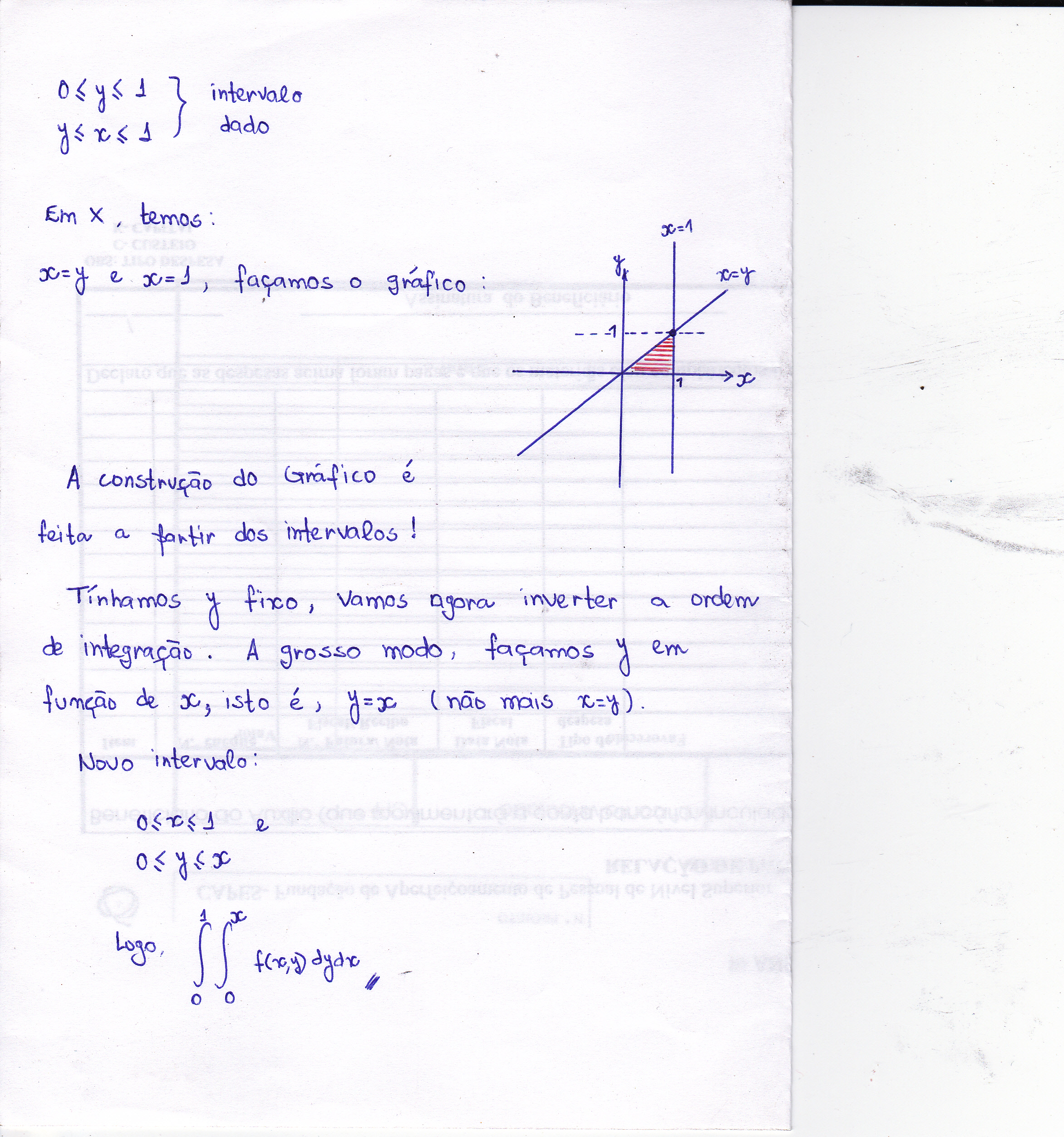 , escreva uma integral iterada equivalente com ordem de integração invertida.