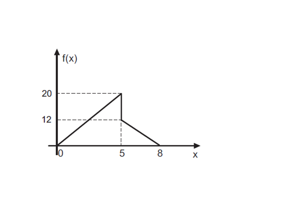 Calculei a área pelo gráfico fazendo (8-5)x12 e dividindo por 3, que deu 12, depois fiz a integral definida de 5 a 8 e várias das resposta dão 12, então não sei qual escolher.