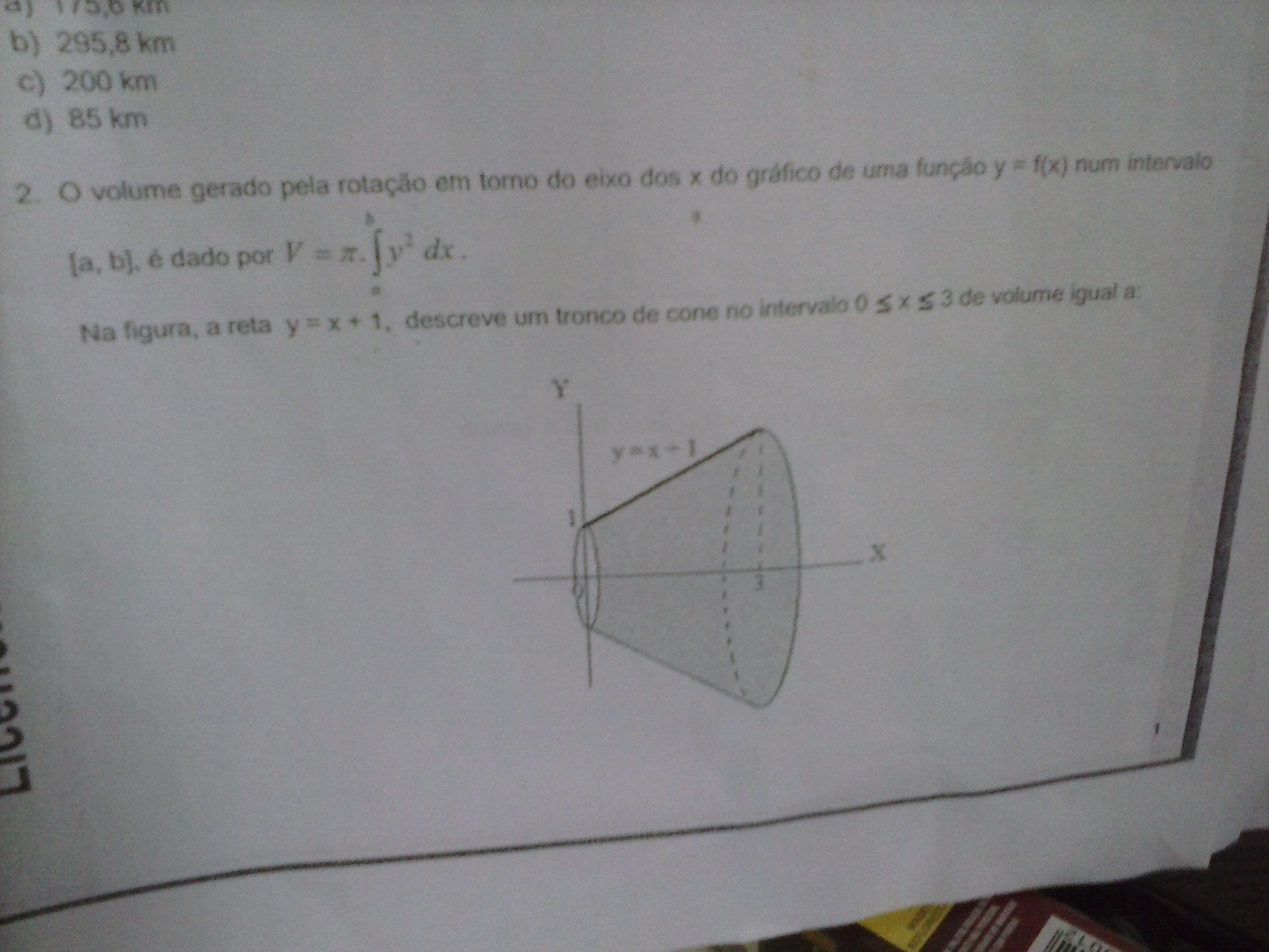 Para essa questão nem é necessário calcular a integral, simplesmente é só se lembrar do volume do tronco de cone