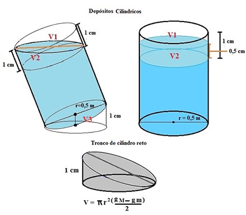 . Tenho um tanque cilindrico com 1,4m de altura e raio de 0,5m. Enchendo até a boca tenho \approx 1 m³[/tex ( 1000 litros). Porém quando está 1 cm desnivelado não consigo enche toda a capacidade, pois de um lado vai vazar. Qual o volume que um não consigo encher?