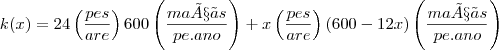 K(x) = (24 + x)(600 - 12x)