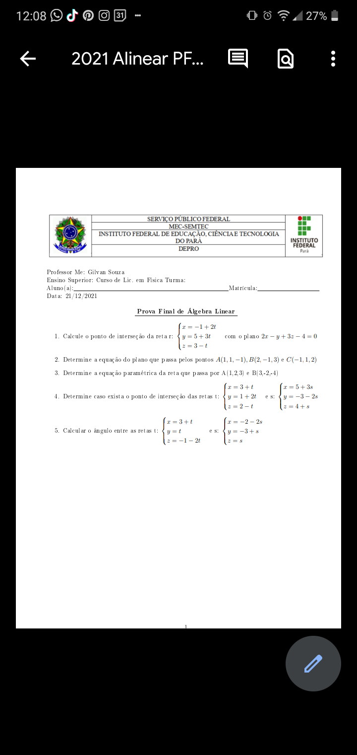 - [Álgebra Linear] Transformação Linear Idenpotente