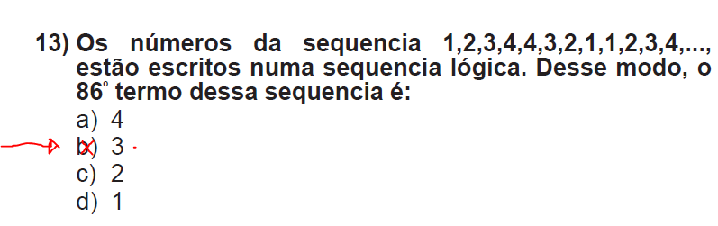 86º = 1, 2, 3, 4, 4, (3) <= 3 <= a resposta