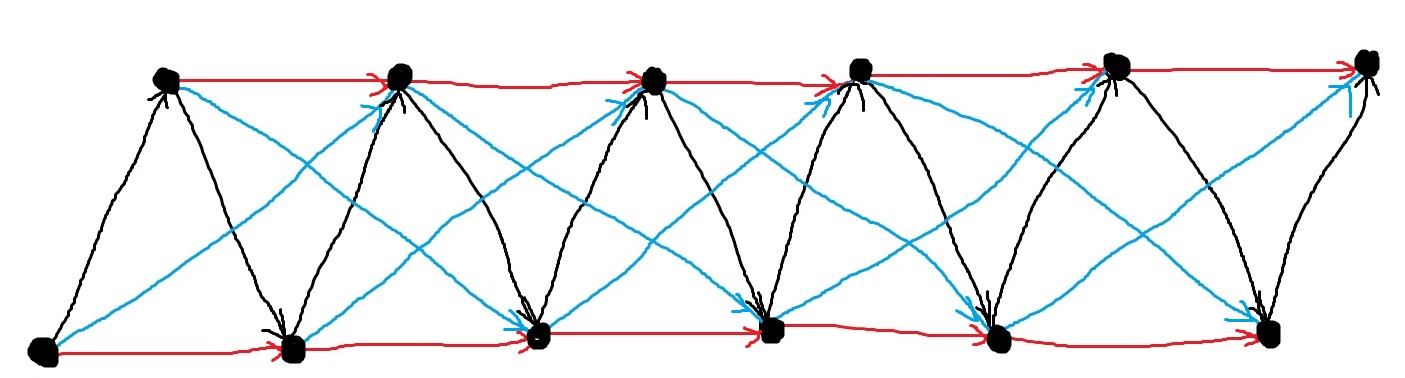 - Uma aresta 1 consegue atingir o próximo nodo, uma aresta 2 consegue atingir o segundo nodo subsequente (salta o próximo), e assim por diante;