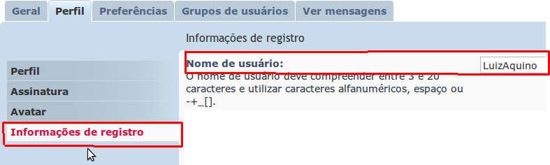 isanobile escreveu:Fui em usuário la, perfil e tal, mas nao conseguir achar nenhum lugar pra mudar o nome do usuário...tem como mudar senha e login mas nao o nome,ta em negrito e nao tem como modificar...