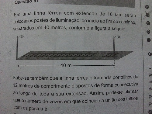 Considerando que o primeiro poste seja posto com a primeira trilha temos,