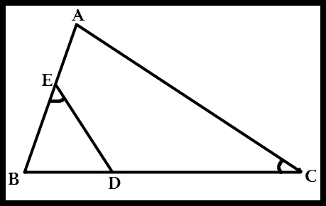 No triângulo ABC, temos AB= 8 cm, AC = 10 cm, BD = 2 cm e BE = 4 cm. Sabendo que os ângulos ACB e BDE têm medidas iguais, então o perímetro do triângulo BDE é:
