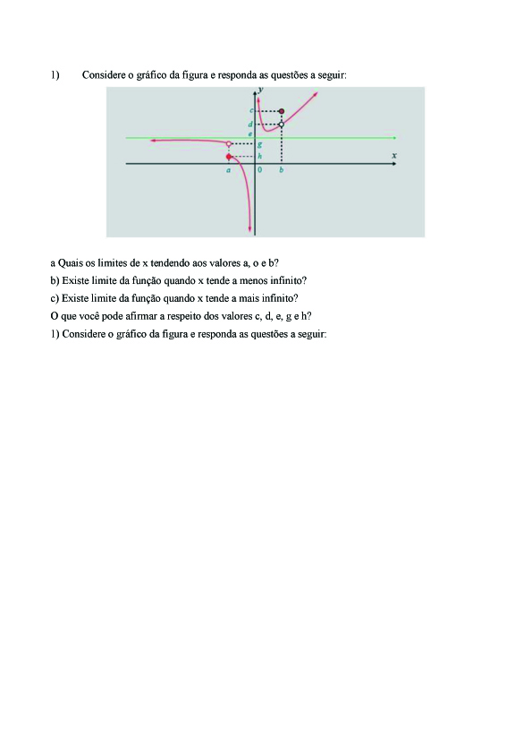a) Quais os limites de x tendendo aos valores a, o e b?