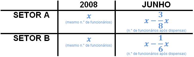 o setor A ficou com 10 empregados a menos do que o setor B,