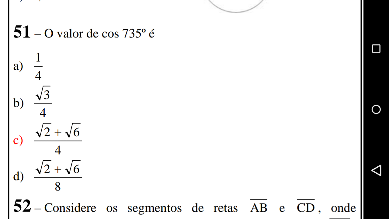 A questão pede cos?735