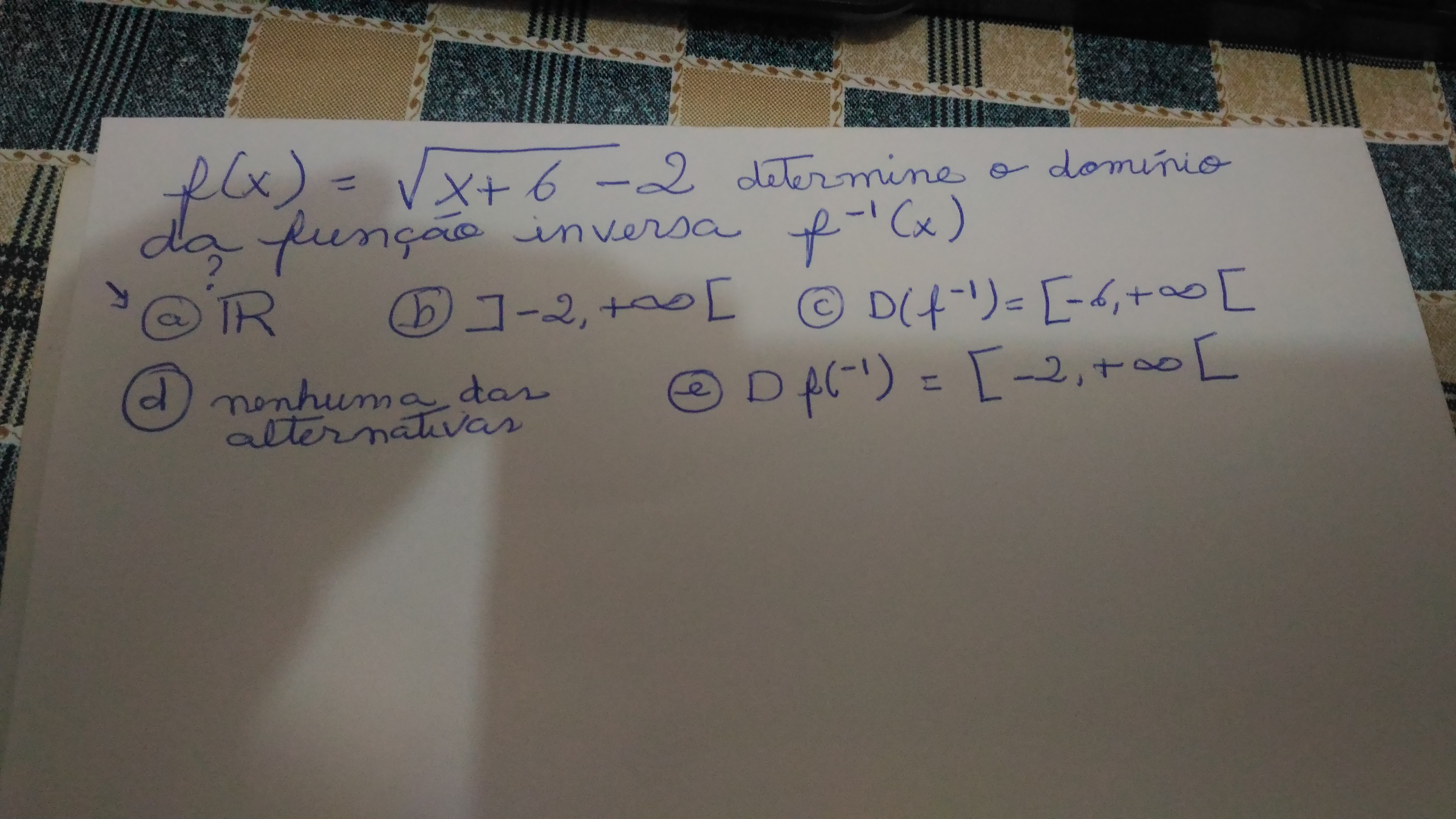 2ª O dominio da função inversa de f(x) é igual a imagem de f(x) (e vice-versa), logo se soubermos a imagem de f(x) temos o dominio da sua inversa.