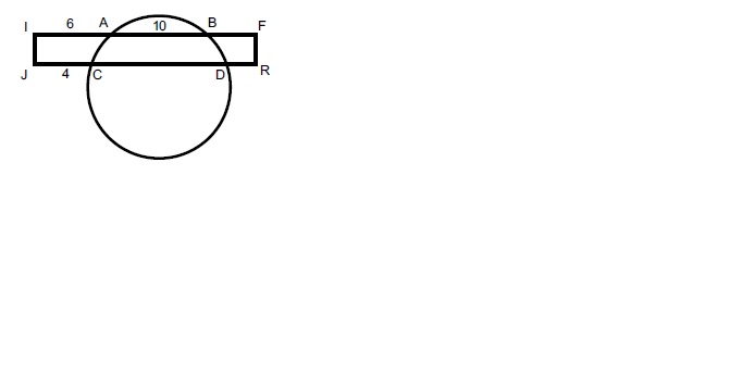 Um retângulo IFRJ intersecta uma circunferência nos pontos A, B, C e D como mostrado na figura a seguir.sabendo-se que IA = 6, AB = 10 e JC = 4, assinale, dentre os valores abaixo, a medida do segmento CD.