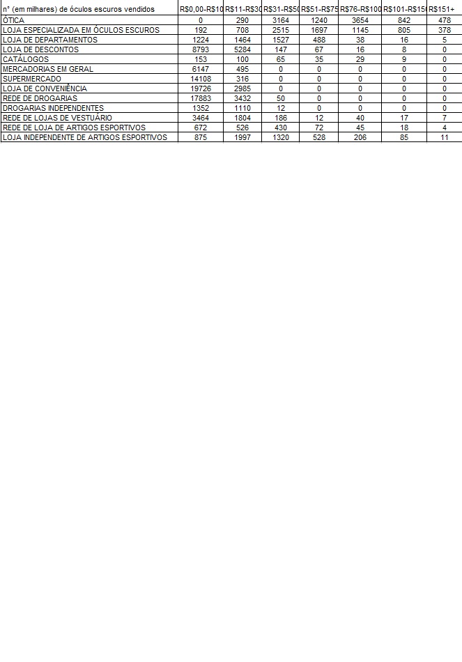 jaloquingen2309+ escreveu:01) Preço Médio: Estime o preço médio de um par de óculos escuros vendidos em uma ( A ) ótica, ( B ) loja especializada, ( C ) loja de departamentos. Use US$ 200 como ponto médio para US$ 151+