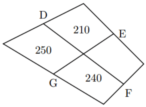 Sejam ABCD um quadrado de lado 12 cm, E o ponto médio de DA e F o ponto médio de BC. Traçamos os segmentos F, AC e BE, que dividem o quadrado em seis regiões. Calcular a área de cada uma dessas regiões.