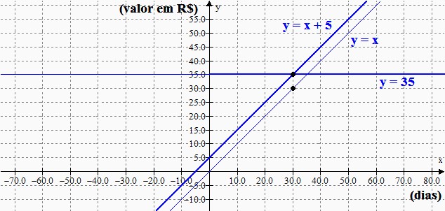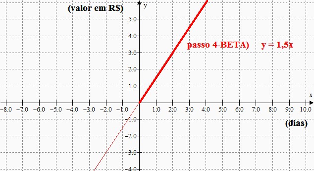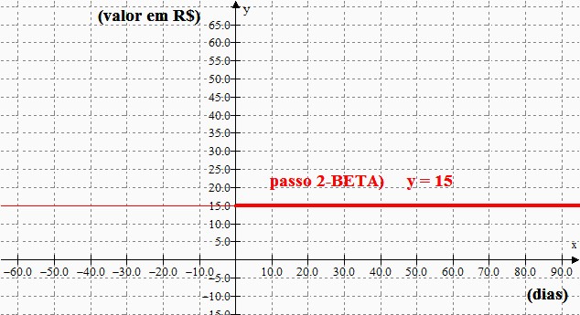 Pense em um gráfico que relaciona "dias" no eixo das abscissas (eixo x) e "R$" no eixo das ordenadas (eixo y).