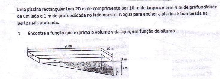 fabiosousa escreveu:JoanFer escreveu:Penso que a altura seja "x-3" mas descobri esta expressão através de tentativas para a altura da segunda parte da piscina dar 1, por isso, fiquei sem perceber o porquê desta expressão. :S