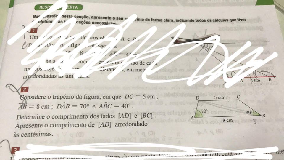 Considere o trapezio [ABCD] em que DC=5cm , AB=8cm; DÂB=70º; ABC=40º.