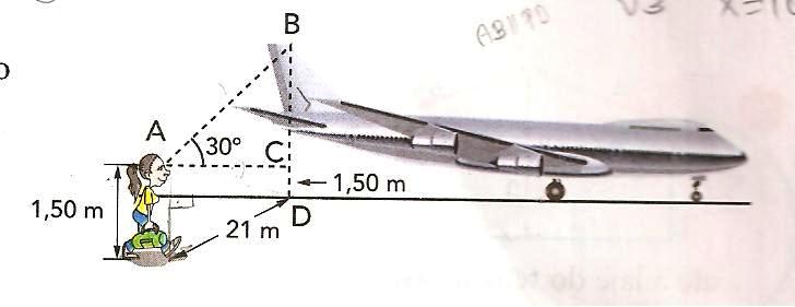 Determine a distância (BD) do chão ao ponto mais alto da asa deste avião.