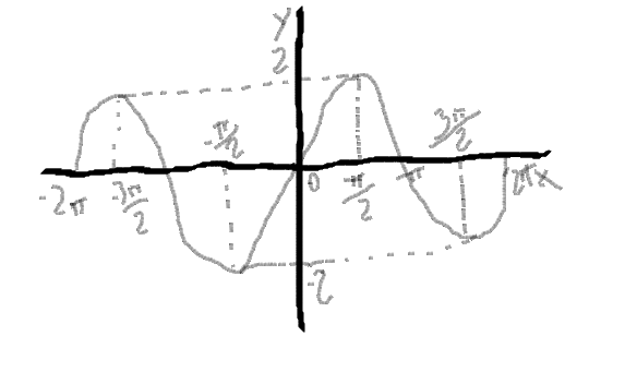Veja que a amplitude da função é 2. Assim, é obrigatório que a função seja y(x) = 2.sin(n.x), onde esse n vamos determinar agora.