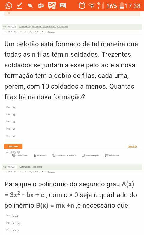Na segunda parte do enunciado é dito que acrescentou-se 300 soldados ao pelotão de maneira que o número de filas dobrou e a quantidade de soldados na fila foi de 10 a menos. Matematicamente, isto é o mesmo que: