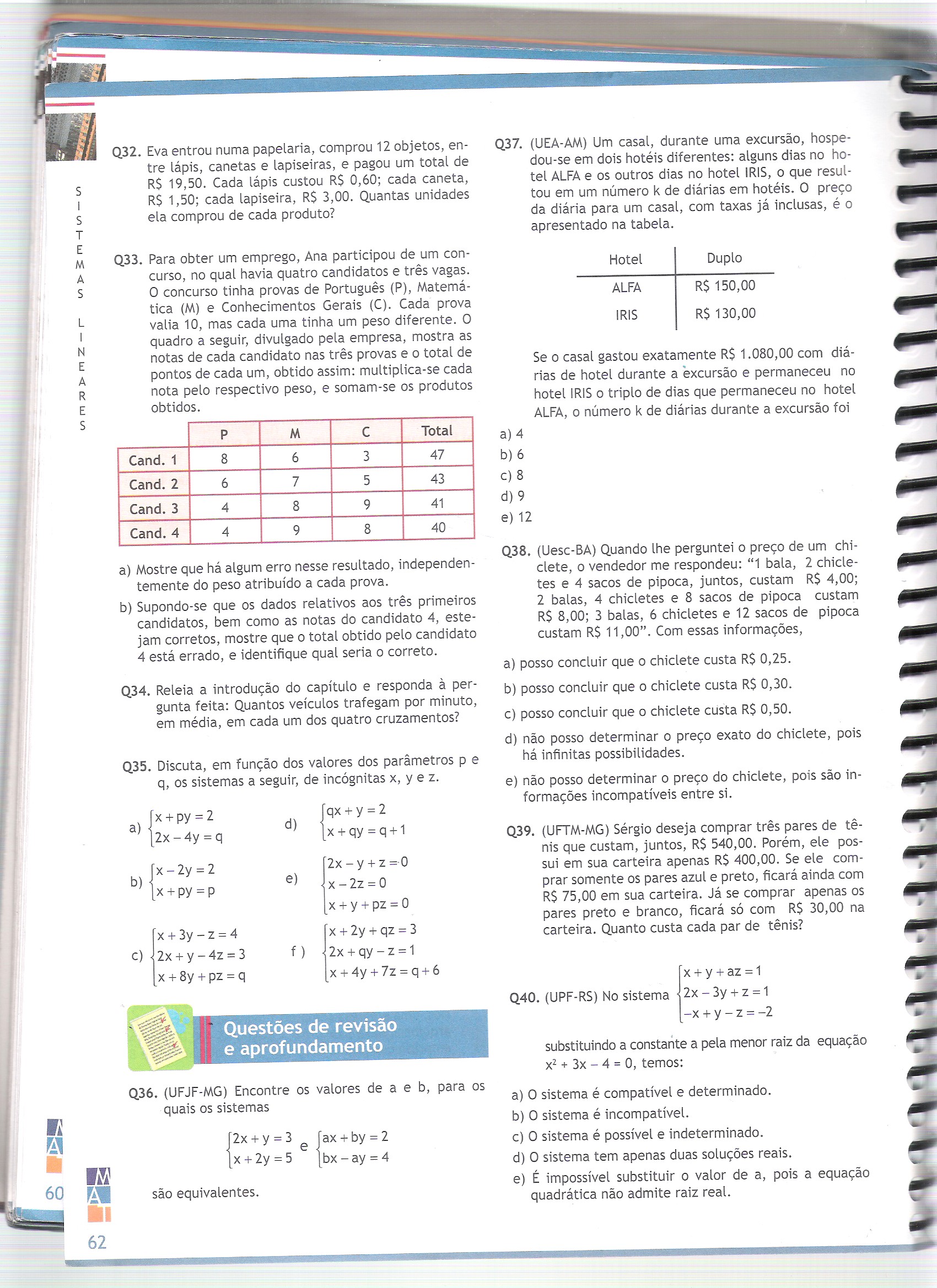 mas quando chego no metodo de escalonamento não consigo.Meu professor deu estes exercicios como trabalho,e valem 5 pontos.Pediu pra resolver no metodo das linhas e do escalonamento,porém so chego na montagem,depois embolo tudo como fazer.Me ajudem por favor.Muito grato.João Bosco.