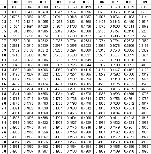 Tabela da distribuição da Curva Normal Padronizada de 0 a Z(a tabela segue anexo)